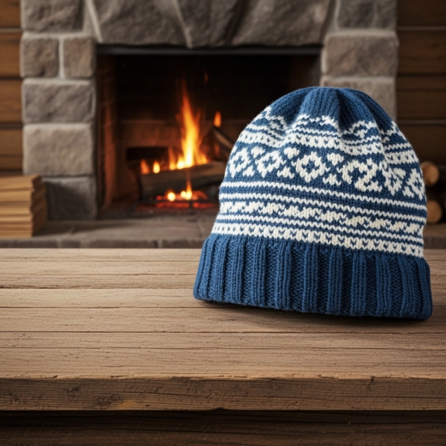 Bonnet nordique bleu et beige en pure laine mérinos. Je l'ai tricoté en suivant un motif traditionnel islandais. Il mesure 26 cm de haut et s'adapte à un tour de tête de 54 à 60 cm. C'est un modèle original qui ajoute une touche de fantaisie aux tenues hivernales.