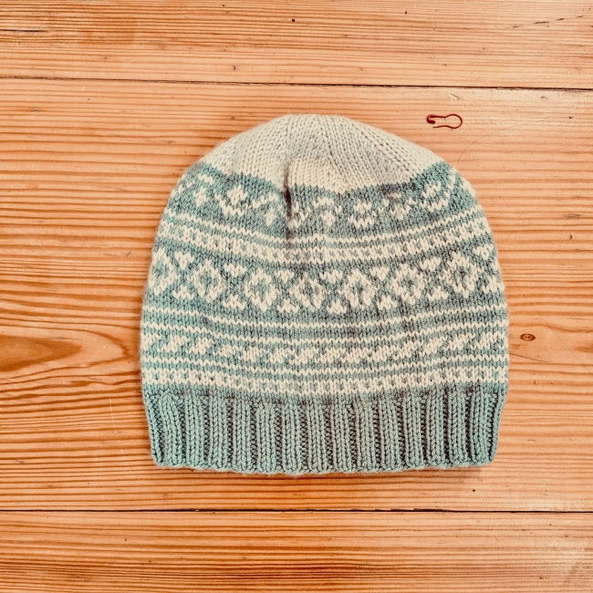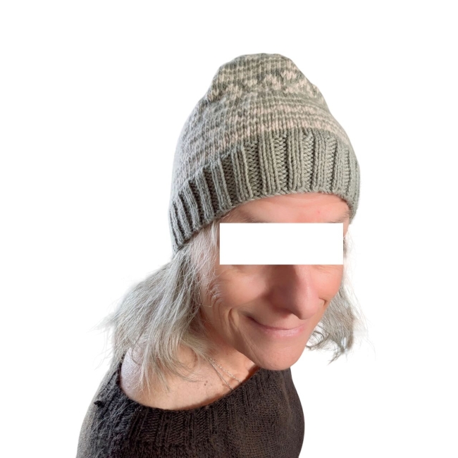 Bonnet nordique vert amande et beige en pure laine mérinos. Je l'ai tricoté en suivant un motif traditionnel islandais. Il mesure 25cm de haut et s'adapte à un tour de tête de 54 à 60 cm. C'est un modèle original qui ajoute une touche de fantaisie aux tenues hivernales.