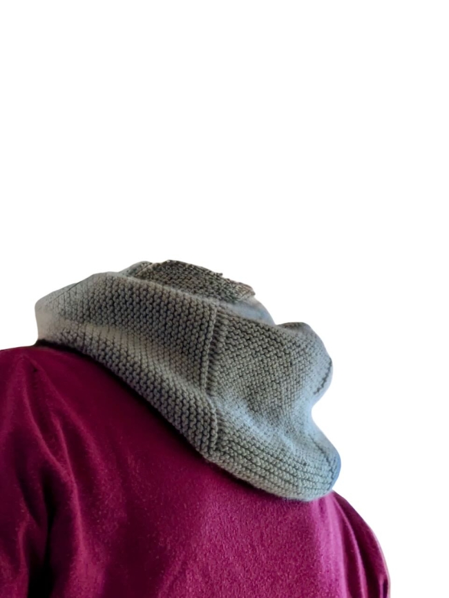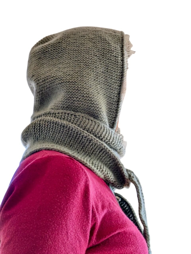 La cagoule écharpe peut se lave à la main à 30 degrés ou en machine programme spécial laine, sans adoucissant pour ne pas casser les fibres de la laine mérinos.