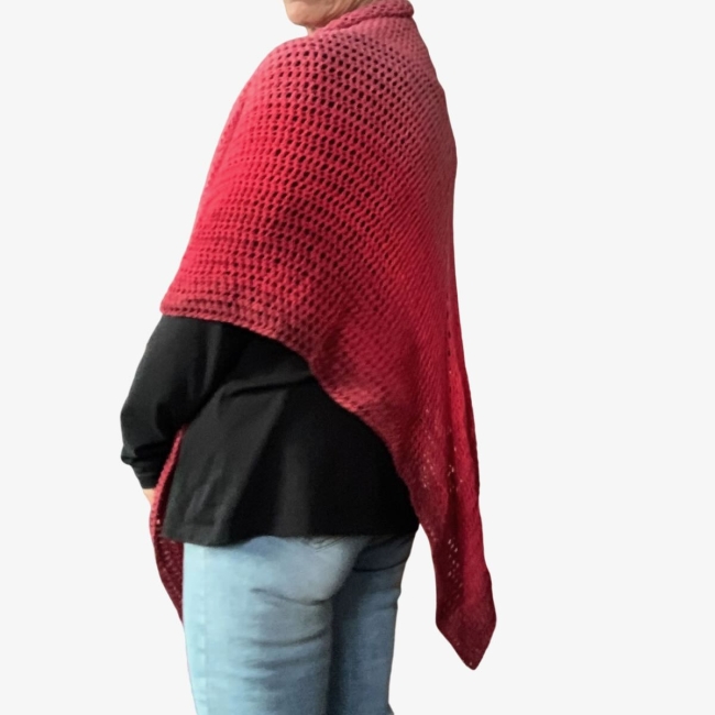 Châle rouge-rubis en pur coton fait main au crochet en Suisse. Il se porte sur les épaules ou en tour de cou. Très élégant sur une robe en été ou en écharpe lorsque que les jours rafraîchissent. Comme le coton est thermique, il s'adapte à la température du corps, ainsi vous n'aurez jamais ni trop chaud ni trop froid.