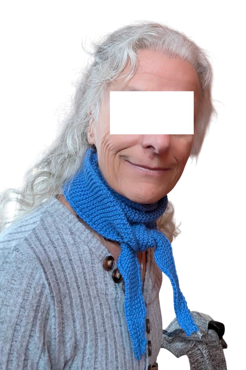 Echarpe Sophie Scarf bleu très douce sur la peau tricot fait main laine mérinos. Idéale pour l'hiver. Elle mesure 140 cm de longueur et 12 cm de largeur au plus large.