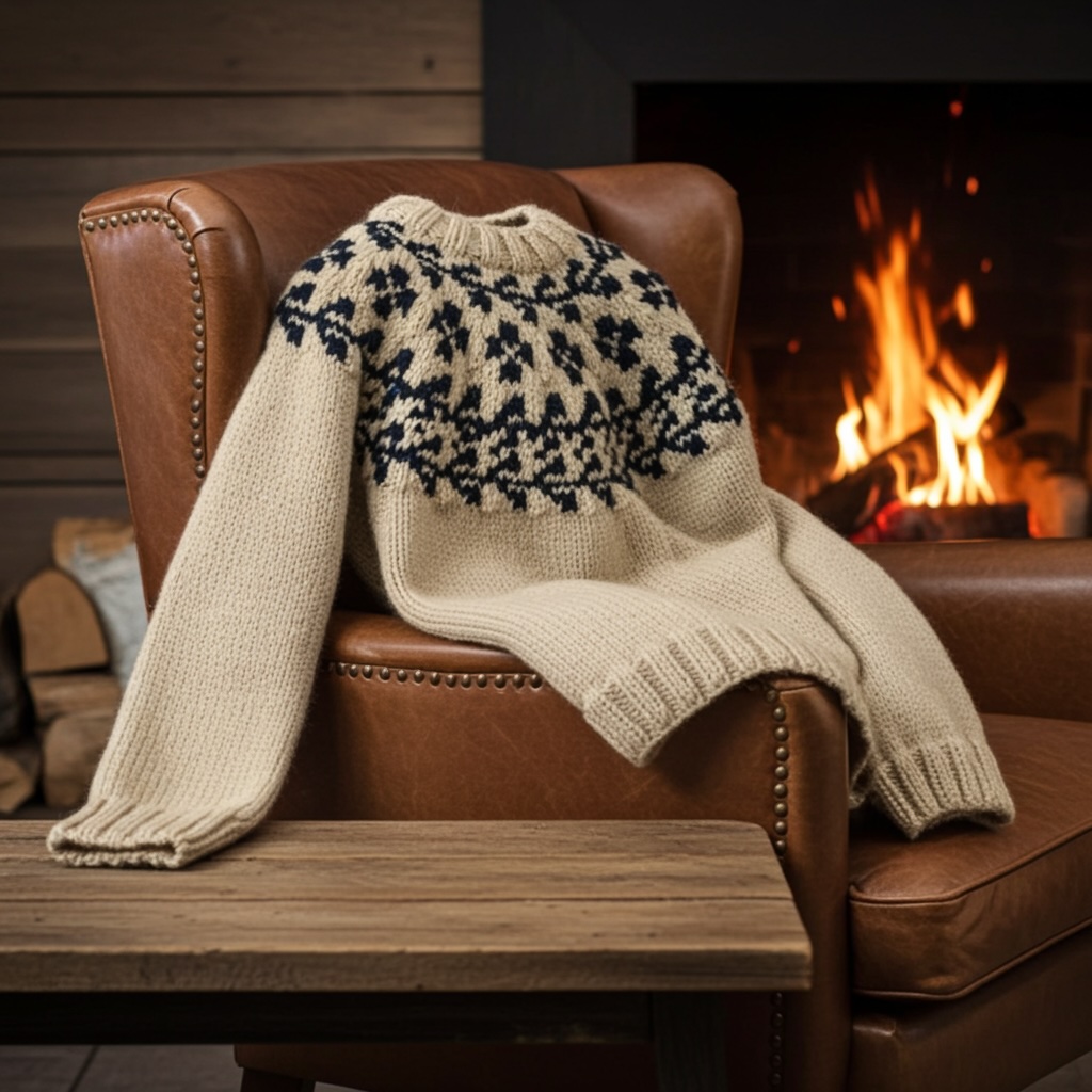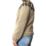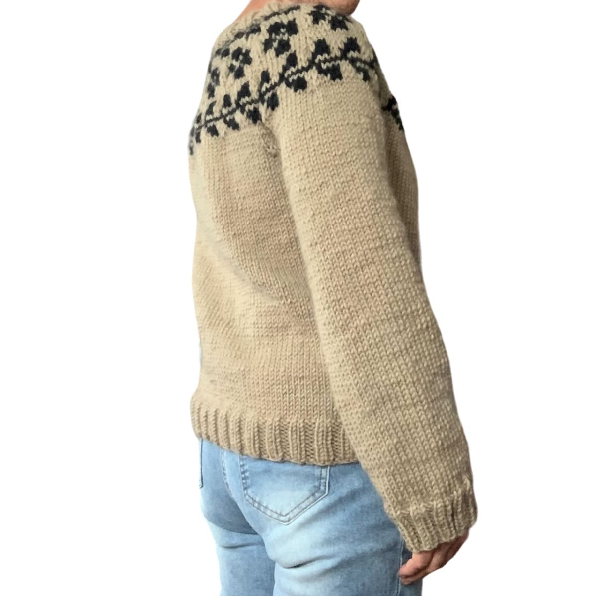 Pull nordique beige-noir taille S fait main en Suisse avec de pure laine. Le pull mesure 52cm de haut et 48cm de large. Les manches mesurent 44cm depuis le dessous des bras. Ce pull réalisé par mes soins dans les montagnes du canton du Valais en Suisse vous tiendra bien chaud l'hiver et les jours froids durant toute l'année. J'ai tricoté la laine Mayflower Molly Fine fil de qualité que Mayflower a développé en collaboration avec Molly Egelind. Elle voulait un fil de laine relativement épais et aéré en même temps. Ainsi, par exemple, des pulls résistants et de bonne structure peuvent être tricotés sans qu'ils ne deviennent trop lourd. Molly Fine est composé à 100% de laine légèrement filée, ce qui aide le fil de laine à conserver sa légèreté et sa chaleur - avant et après avoir été tricoté.