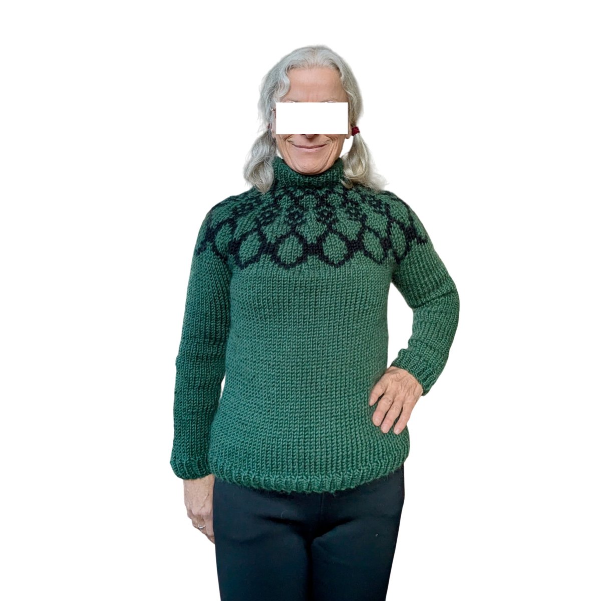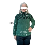 Pull nordique vert et noir taille S très chaud pour femme et unisexe. Il peut être porté à l'extérieur contre le froid car il est tricoté avec de la pure laine isolante et thermique. C'est à dire que le pull respire et se porte également à l'intérieur.